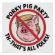 This design delivers sharp satire with a nostalgic twist: a cartoon pig face sits behind a red prohibition symbol, surrounded by curved captions reading “PORKY PIG PARTY” and “Th-th-th-that’s all folks!” It's a visual rallying cry against entrenched single-party dominance in politics. The piece calls for an end to political monopoly and advocates for a system where multiple voices and diverse viewpoints are not just allowed—but empowered. Through humor and vintage familiarity, it turns protest into punchline, inviting audiences to imagine a future beyond stale, one-sided rule