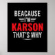 Porque soy Karson, por eso el regalo del Día del Padre de los Navidades de Nombre. Regalo perfecto para tu padre, mamá, papá, hombres, mujeres, amigos y familiares en el Día de Acción de Gracias, Día del Navidad, Día de la Madre, Día del Padre, 4 de julio de 1776 Día independiente, Día de los Veteranos, Día de Halloween, Día de Patrick
