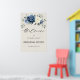 Póster de bienvenida para la cena de ensayo con flores azules polvorientas que presenta un ramo elegante de azul marino, azul real, blanco, dorado, marfil champán, rosa desmayado, capullos de flores de ranunculus y hojas de eucalipto verde salvia y ramo de acuarela elegante. Por favor, contácteme para cualquier ayuda en personalización o si necesita cualquier otro producto con este diseño.