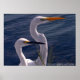 Este Poster es una fotografía original de dos pájaros blancos de cuello largo posando junto a las aguas azules profundas del océano. El pájaro con el largo y puntiagudo pico negro es una garganta nevada. El pájaro con el largo y puntiagudo pico naranja amarillo es una gran garganta. Hay un texto que identifica las aves en la esquina inferior del poster. Esto está configurado para que usted lo personalize o elimine si lo prefiere.