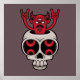 Ilustracion vectorial personalizado de un demonio que se alza de un cráneo con pesados gestos metalizado de la mano del cuerno del diablo.