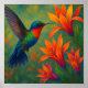 Stunning poster featuring a colourful humming bird with exotic flowers.