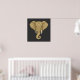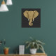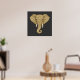 This antique-gold elephant design features intricate mandala detailing throughout, creating a dimensional look, while the bone-toned tusks and amber eyes add natural contrast against the charcoal background. This beautiful boho graphic poster art will be a great addition to your home decor.