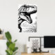 A giant t-rex dinosaur, in black and white, on a wall poster for you to color or display, as is.