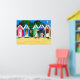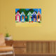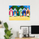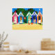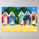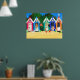 Un gran poster de un collage de cabañas de playa de papel pintado a mano.