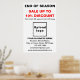 Poster que usted puede usar como material de marketing para su negocio para atraer más clientes cada fin de temporada. poster de personalizable con venta al final de la temporada, su nombre comercial y otra información. Personalizar y úsalo para convencer a más clientes de que compren sus productos o clientes para que les gusten sus servicios este fin de temporada. Los colores de diseño y la forma son textos en negro y rojo sobre el fondo blanco y la forma rectangular de formato de retrato. Los contenidos son el final de temporada, la venta, el porcentaje de descuento que ofrecerás, las fechas de venta, tu nombre de negocio, logotipo, dirección, número de teléfono, correo electrónico y sitio web o tu página de medios sociales. Compruebe la apariencia después de cargar el logotipo y escribir textos. Si la apariencia le resulta agradable, puede realizar su pedido ahora. Si necesita cambiar el tamaño y mover el logotipo y los textos para que encajen en este poster o en otro tamaño, forma y estilo apropiados que elija, por favor cambie la herramienta de diseño. También puede realizar otros cambios en la herramienta de diseño según la apariencia de este poster que prefiera, como cambiar el color de fondo, el color del tipo de letra y el estilo del tipo de letra. Te deseo más ventas este fin de temporada y todas las temporadas.