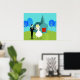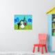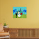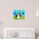 Este Boda Retro Pareja Poster le hará oír campanas de bodas. El estilo de los años 60, con un diseño de arte minimalista, cuenta con un novio y una novia en el día de su boda. La feliz pareja se ve lo suficientemente buena como para estar parado encima de una torta boda. Pero no lo son. Están parados sobre hierba verde y exuberante. El debonario Mr. está usando un clásico esmoquin negro con corbata de arco negro. ¡Abajo, damas! ¡Se lo llevaron! Está sosteniendo la mano de su hermosa señora, que se ve positivamente radiante en su longitud de té, vestido blanco con cintura ajustada a la forma y falda flarroja. Verdaderamente se parece a una princesa con su tiara y su velo boda blanco y gamberro apoyándose en su bonito rubia. Al lado, un camino en el césped conduce a la capilla más encantadora del mundo. La pintoresca, verde azulada y turquesa iglesia es el lugar perfecto para decir: "¡Lo hago!" Sí, aquí está la iglesia. Aquí está el campanario. Solamente podemos asumir que, detrás de ese rojo brillante, las puertas dobles son un cuarto de personas que solamente esperan compartir la felicidad de esta pareja. El entorno es pintoresco, con cuatro árboles estilísticos personalizados en tonos azules. Es un día hermoso para un boda, como podemos ver desde el cielo acuático impecable. Lo único que falta en este diseño moderno de mediados de siglo es el arroz, y podemos suponer que eso será inminente. Este diseño tiendas de novias, planificadores de bodas, y por felicitar a tus recién casados favoritos.
