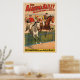 Poster de circo de Barnum & Bailey de época que muestra jinetes montados en caballos saltando una valla, alrededor de 1900.