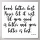 Poster citando a St. Jerome sobre la automejora. "Bien, mejor. Nunca lo dejes descansar. "Hasta que tu bien sea mejor y tu mejor sea mejor".