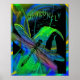 Poster enmarcado con libélula colorida. Símbolo de transformación