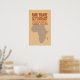 Nota: ¡Este es un mensaje de comercio justo pero no necesariamente un producto de comercio justo! El texto dice: Comercio justo. Ayudar a África a adquirir autosuficiencia económica. La dependencia de la ayuda alimentaria no es una solución. Hermosa combinación de tonos marrones y naranjas con el mapa de África.