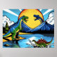 Póster Poster con paisaje de dinosaurios