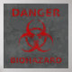 Peligro - Bioriesgo - poster gris angustiado con diseño de símbolo de riesgo biológico rojo.