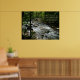 Poster del arroyo forestal con una escritura. El que cree en mí, como ha dicho la Escritura, saldrá de su corazón ríos de agua viva". Juan 7:38