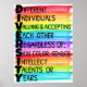 DIVERSIDAD - Diferentes personas valorándose y aceptándose entre sí, independientemente del color de piel, el género, el intelecto, los talentos o los años de Poster, para utilizarlos en un aula, la Oficina de Consejeros Escolares, la Oficina de Escuelas Terapéuticas, la Oficina de Psicólogos Escolares, la Oficina de Trabajadores Sociales Escolares o la Oficina de Psicólogos Infantiles. Este poster también es muy útil para la decoración de las habitaciones para adolescentes o de la escuela media, y como arte motivacional, bondadoso y anti-matones en aulas de todas las edades. La decoración de arte es muy inspiradora y estimulante. ¡Un gran gráfico colorido que atraerá la atención de los niños y les recordará la diversidad es algo que hay que celebrar! Colores luminosos en un fondo de color arcoiris.