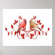 Un par de cardenales sobre algunas hojas coloridas. Ponga este ave amorosa en un poster o una huella enmarcada que puede elegir el apareamiento de un marco. Gran regalo para un amante cardenal.
