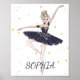 Un poster de ballet especial para la bailarina. El diseño se personaliza fácilmente introduciendo su propio nombre. Una bailarina se exhibe sobre un fondo blanco y dorado.