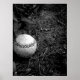 Impresión única en blanco y negro de una pelota de béisbol que ha sido olvidada. ¡No te olvides de mirar todas nuestras otras impresiones!