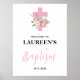 Baptismo de Chica rosa Bienvenido Poster de signos de bienvenida 18x24 Aquí está el enlace de la colección de bautismo rosa: https://www.zazzle.com/collections/pink_girl_baptism_collection-119527490204150078 En funda necesita algo de personalización, envíe un correo electrónico: szdesigns2021@gmail.com