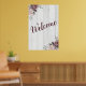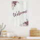Este boda rústico poster de bienvenida presenta un fondo de madera blanca con rosas acuáticos y un poco de vegetación. El estilo de fuente y el color se pueden cambiar en el menú personalizado. Este poster forma parte de una suite boda que incluye una invitación a la boda y muchos elementos esenciales para los bodas.
