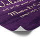 Elegante, moderno, rústico, boda de madera púrpura, poster de bienvenida con encaje floral dorado, luces de cuerda y guión moderno de caligrafía.