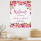 Poster De Bienvenida Del Boda Floral Rosa Fuchsia.