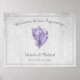 Poster de bienvenida Boda, elegante y sencillo, con una concha de concha vintage sobre un fondo gris oscuro. Este diseño es una elección única para un boda moderno. Fácil de personalizar con los detalles de su boda. Haga clic en "Personalizar" para encontrar más opciones de personalización.