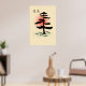 Se muestra un bosquejo en blanco y negro de un bonsai clásico con "Japón" en caracteres kanji.