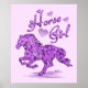 ¡Brilla por tu habitación de niñita con este Poster único de caballos "uno de bondad"! Cuenta con un caballo galopante en flores moradas, rodeado de corazones morados y la cita..."Chica de caballos"! Diseño De Arte Original Del Artista Kerry Miller.