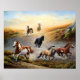 Hermosos caballos de pintura corriendo por el desierto agitando el polvo, mientras un vaquero los persigue.