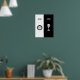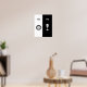 Dividido en dos partes iguales por la mañana y la noche. El blanco de la mañana con ilustraciones negros y escritura personalizado y negro de la noche con ilustraciones blancos y escritura personalizado.