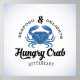 Plantilla de logotipo de vectores retro de cangrejo de hambre o etiqueta vintage con tipografía. Aislado | © y ® Bigstock® - Todos los derechos reservados.