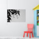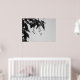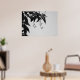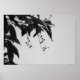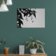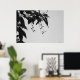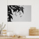 Este poster presenta ramas de cerezos salvajes, con cerezas pequeñas colgadas en blanco y negro