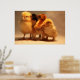 Una fotografía vibrante a todo color de cuatro polluelos de bebé, incluyendo un pullet buff orpington y tres bantams variados.