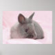 Una foto de un lindo conejo azul en un fondo rosado