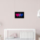 Poster con el diseño de corazones en colores de bisexualidad; rayas rosadas, violetas y azules, bandera del orgullo, diseño de amor arcoiris sobre fondo negro