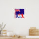 Tres jugadores de cricket de Silhouetted frente a la bandera de Nueva Zelanda con el nombre de país Nueva Zelanda en el costado.