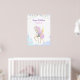 Poster de cumpleaños con un adorable unicornio con alas, que está rodeado de adorables fotos de un castillo mágico, nubes y conglomerados festivos.