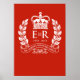 Este poster especial de comorativos lleva un diseño que se remonta a años anteriores del jubileo con la guirnalda de los laureles que significan los 60 años de servicio de H.R.H. Queen Elizabeth a su país. Lo llamamos simplemente, Garland. También incluye una interpretación de la corona de la Reina por encima de la clásica insignia E II R y los años del jubileo. Lo presentamos aquí en Rojo Regal pero puedes personalizar el color de fondo fácilmente haciendo clic en 'Personalizar it' y luego en 'Editar' y finalmente en 'Fondo'. En la parte inferior derecha de la paleta se ve un código pequeño. Puede escribir códigos para varios colores, por ejemplo C61F0D para Red Regal, 000042 para Azul Real o 006633 para Verde Gorgeous. Por supuesto, se puede hacer clic en cualquiera de los colores presentados en la paleta. Muestre su apoyo a Su Majestad la Reina y la Familia Real en el año del Jubileo mostrando con orgullo a este poster.