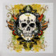 Diseño de ilustraciones de cráneo con plumas y remolinos.