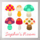 Un adorable diseño adorable de hongos divertidos y coloridos. Este bonito ilustracion infantil es perfecto para un dormitorio de chica. Tema de patrón colorido de hongos. La diversión de los niños juguetones. Nombre personalizado para la habitación de los niños.
