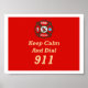 Este poster está decorado con la Cruz Maltesa de Fire Rescue y las palabras "Mantenga la calma y marque el 911".
