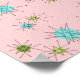 Este patrón Poster de estallidos atómicos de Icónica Rosa presenta estallidos atómicos icónicos. ¡Así es! La vieja escuela, el fondo de color rosa de la primera dama con especkles de oro, es el escenario perfecto para el turquesa vibrante, el apetitoso apio y los círculos kitschy de color verde pera. Las manchas de color se colocan esporádicamente en varios tamaños, con líneas en forma de V negra superpuestas que forman las estallidas modas del sputnik. Diseñado siguiendo un patrón de platos de la década de 1950, este diseño de inspiración retro tiene todo lo necesario para ser realmente moderno a mediados de siglo.
