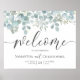 Hermosa firma rústica de boda de eucalipto para su día especial. La vegetación eucaliptus se ha creado con acuarela y tiene un fino efecto de empolvado de oro para ese toque de lujo añadido. La caligrafía de bienvenida de gran tamaño está escrita a mano con un estilo de letra gris. Fácil de editar con su información única.