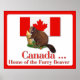 Un juego travieso de palabras para estos regalos y ropa divertidos. Presentan un castor sentado con la bandera canadiense al fondo. El texto dice "Canadá... Hogar del castor de la ira"