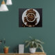 Se muestra al poster con una foto impresa de granos de café en una taza. Personalizar este artículo o compra tal cual. Imagen de stock