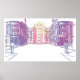 Un ilustracion urbano con edificios urbanos al final. Este diseño parece realmente efectivo en este Poster
