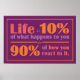 "La vida es el 10% de lo que te pasa y el 90% de cómo reaccionas ante eso". Ver mi tienda para más artículos con esta cita.