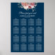 Este elegante gráfico de asientos cuenta con una decoración de color agua y rosas en tonos rosas sobre un fondo marino rico. Este bonito cuadro de asientos forma parte de una suite boda que puede ser totalmente personalizada.