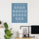 Poster de la tabla de asientos del Boda de mesa Dusty Blue 17, por favor, personalice los nombres de la pareja y los nombres de los invitados junto con cualquier otro texto que desee personalizar. Un elegante poster con un elegante texto en blanco sobre un bonito fondo azul polvoriento.